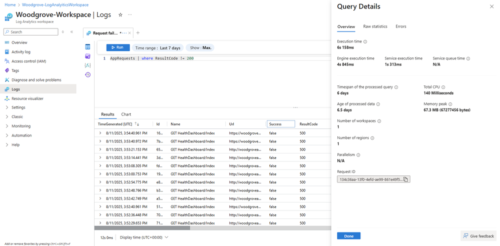 With these enhancements, query troubleshooting is made easier - All within the familiar Azure Log Analytics experience over the Azure Portal.