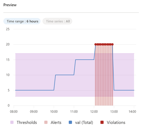 Dynamic threshold for log alerts preview chart displayed when setting up a new alert rule