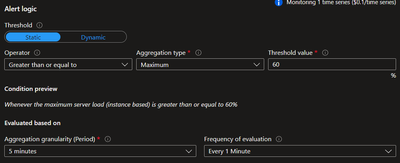 For testing and for the sake of this blog, I have used a very short frequency and threshold to trigger this alert. More about threshold and frequency at the end of this blog.