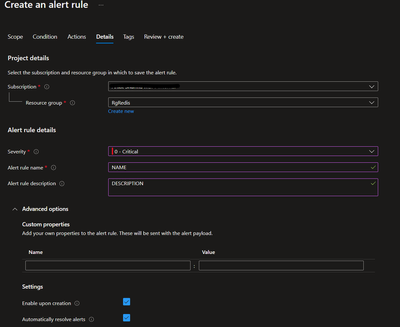In the alert rule details, please fill the details as per your requirement. We need to select 'automatically resolve alerts'. This will resolve the alert once the server load falls below the configured threshold. The reason why we need to do this is, when the alert is triggered/fired, on each subsequent evaluation if it finds the current level exceeding the threshold, it will not re-trigger/fire another alert. It will wait for the current alert to resolve.