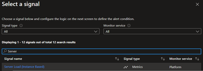 We will create an alert rule on 'Server Load (instance based)' and specify the frequency & threshold.