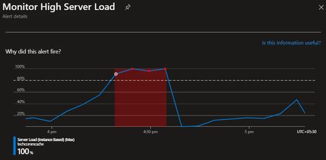 When the Server Load goes down, below threshold level, the alert is auto-resolved as we configured it. This also triggers a call to the Function. Thus we have the condition in our Function to only handle 'Fired' alerts not 'Resolved' alerts.