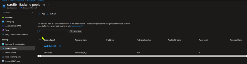 CSES Internal LB backend pool