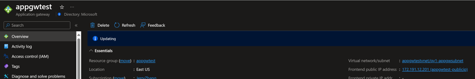 P.S. In order to make the whole process easier to follow, only the basic function of forwarding traffic is realized in this article. If any additional feature is needed, such as HTTPS traffic or WAF configuration, please kindly create a support ticket to Application Gateway team for further assistance.
