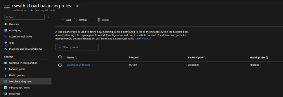 CSES Internal LB load balancing rule