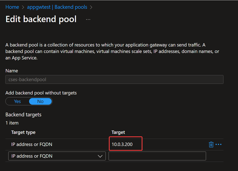 Application Gateway backend pool