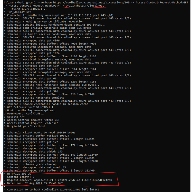 An example here, I am sending a curl request to my APIM with a origin of https://localhost (this is not in my CORS allowed origin). In the response, I can see a HTTP 200 without any response content.