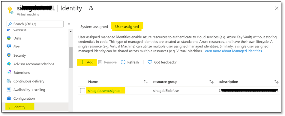 i. If you’re using User assigned managed identity, please add the identity in ‘User assigned’ configuration of your Linux VM as shown below: