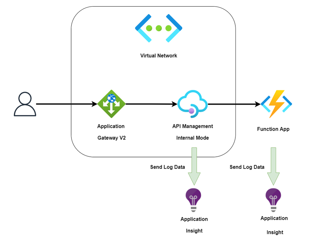 - Both API management and Function App have an App Insight to log down requests’ information.