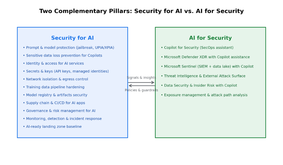 Microsoft’s two-pronged strategy—Security for AI and AI for Security—empowers organizations to safely scale generative AI while strengthening incident response and governance across the stack.