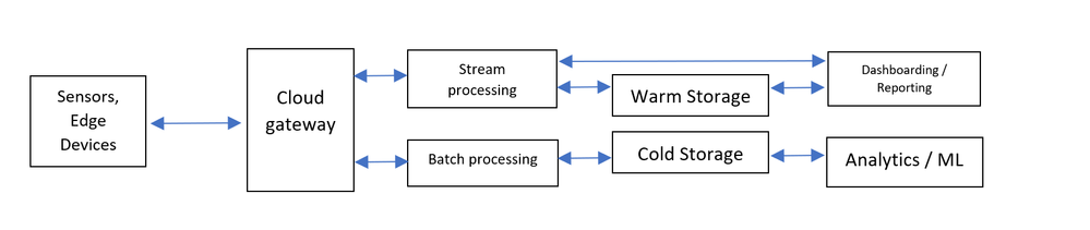 If we look at a canonical IoT architecture, like the above, we can identify and describe roles and responsibilities of each of these components: