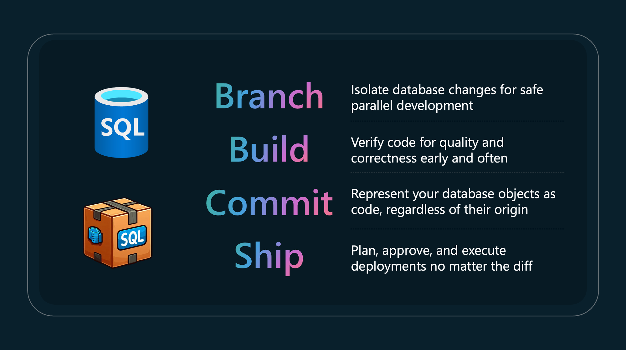 Database DevOps tooling for Microsoft SQL brings the benefits of database-as-code to your development workflow. At its core are SQL database projects, which enable you to source control your database schema, perform reliable deployments to any environment, and integrate code quality checks into your development process. Whether you're managing a single database or orchestrating complex deployments across multiple environments, SQL projects in SQL Server Management Studio (SSMS) provide the foundation for modern database DevOps practices.