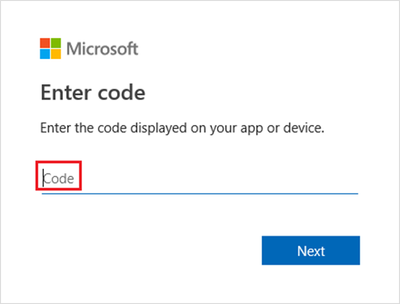 Run https://microsoft.com/devicelogin on your machine’s browser and enter the code provided to authenticate.