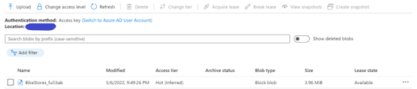 After you transferred the file to Azure blob storage, restore a full database backup by executing the following T-SQL code.