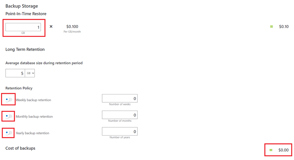 - Keep long-term retention backups turned off.