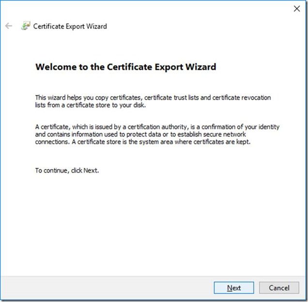 To begin, locate and export the certificate corresponding to your CMK. To do this, you need to use the Certificates MMC add-in . An important assumption here is that the certificate is stored in the ‘Current User’ store. This is because Azure App Service does not expose the equivalent of the ‘Local Machine’ store for web applications, and the default target certificate container is recorded within the certificate when it is exported.