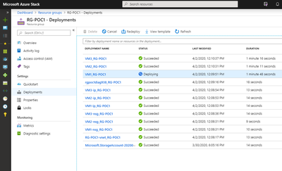 As you can see, the first resources were successfully deployed, but not the VMs themselves. A quick check on the deployment revealed the issue