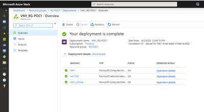 As you’ll notice from the deployments tab, most of the resources will not change, but the VM1 will have an extra item created (the Managed Disk) and the VM will be created using that OS disk: