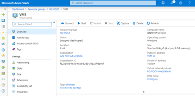 Note: Since the ASDK uses a specific set of “public IPs” (which are NATed IPs by the ASDK), the PublicIPs would change when the resources are created, but the PrivateIPs could be maintained if needed.