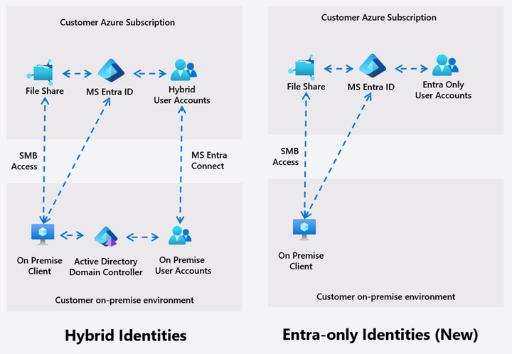 As organizations accelerate their cloud-first journeys, the ability to deliver secure, seamless identity and access management for storage in the cloud is now a game-changer. We are excited to announce the Public Preview of Entra-only identities support with Azure Files SMB. With native Entra ID (identities are created and managed entirely in the cloud, with no reliance on on-premises Active Directory or hybrid setups) authentication for Azure Files SMB, customers can move beyond the limitations of on-premises Active Directory and hybrid sync tools—enabling cloud-created identities to access file shares securely, from anywhere. This unlocks a new era of agility: organizations can modernize their storage, compute, and identity infrastructure entirely in Azure, reducing operational complexity, strengthening security with Zero Trust alignment, and cutting costs tied to legacy infrastructure. The result? Faster onboarding, simplified management, and a future-ready foundation for workloads.