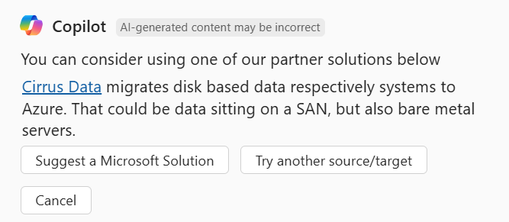 - Copilot recommends Partner solutions for specialized migration scenarios