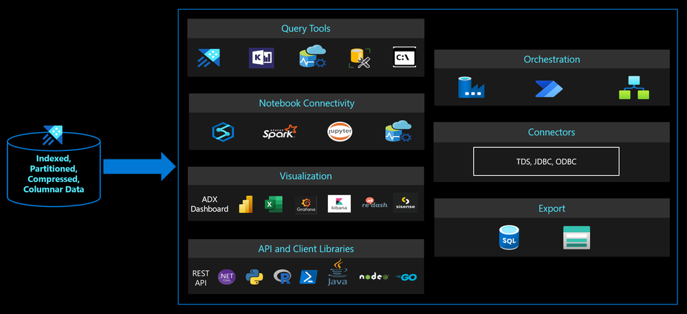 - Visualize data using ADX Dashboards, Power BI, Excel, Grafana, Kibana, Redash.