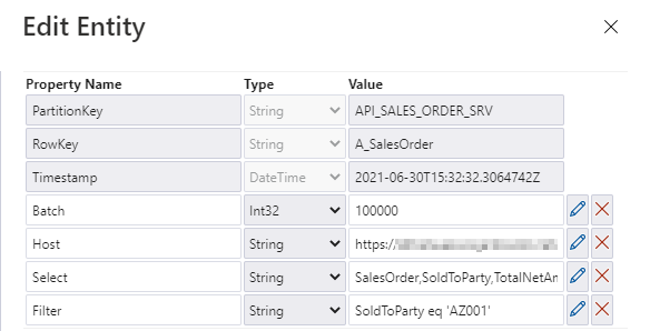 When you click on the icon in the User Properties column, you can display the defined user properties. As we use the same expressions as in the Copy Activity, we clearly see what was passed to the SAP system. In case of any problems with the data filtering, this is the first place to start the investigation.