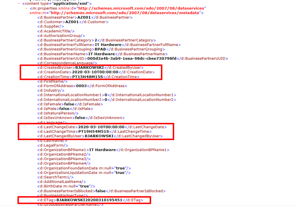 In theory, there is also a field ETag that looks useful. But in fact, this field is used to manage editing concurrency, and some SAP cloud products already prohibit filtering using the ETag value.