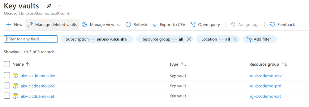 Key vault Name: akv-cicddemo-<env_suffix>
