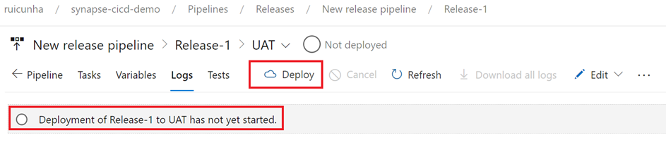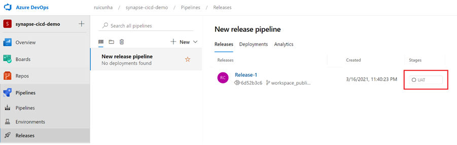 Now that your first release was successful, we need to validate the deployment to the UAT Synapse Workspace. Follow these steps: