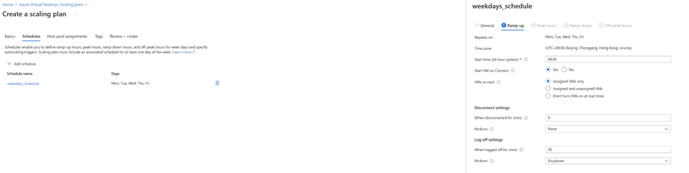 To enable this feature, simply create a personal scaling plan, define whether to enable or disable Start VM on Connect and what action to perform after a user session has been disconnected / logged off for a configurable period of time (deallocate the personal desktop or do nothing) across 4 phases in a day, and assign personal scaling plan to one or more personal host pools.