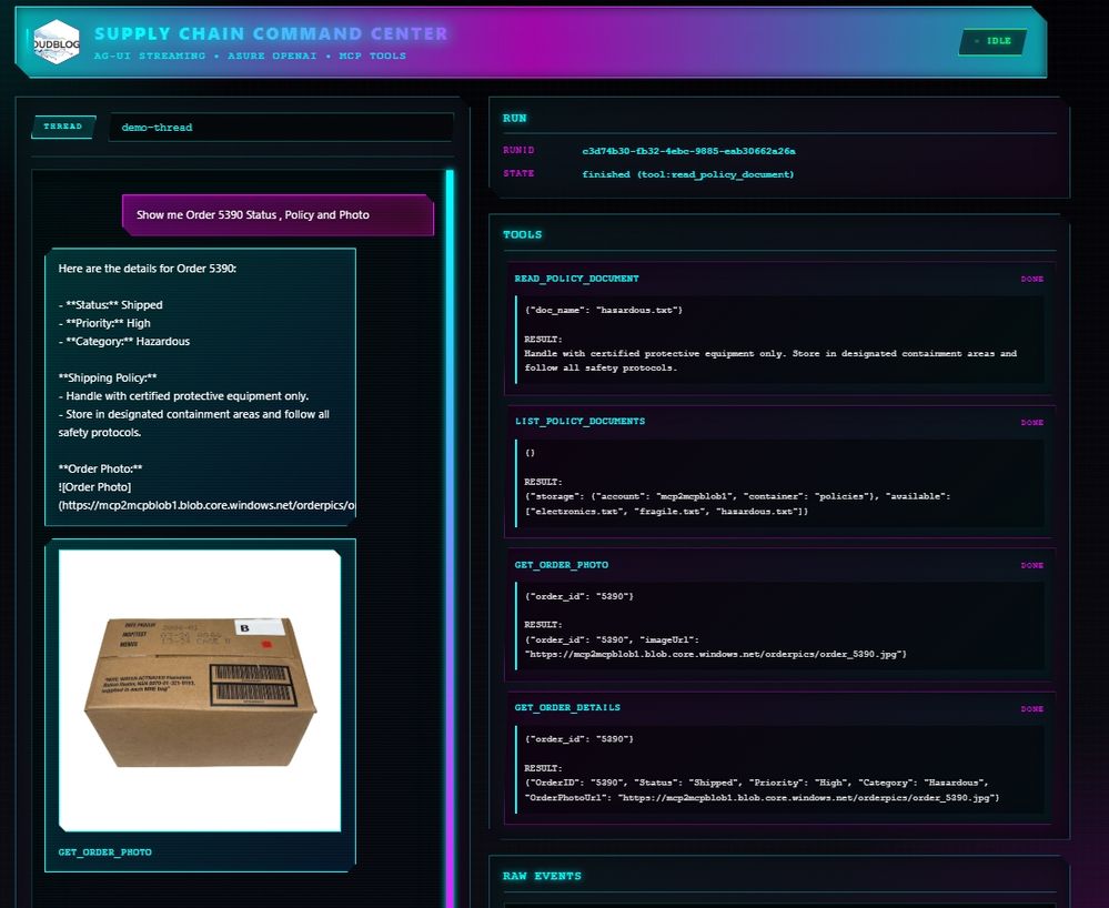 The modern AGUI meets Agents Framework and MCP in this workshop, representing a real world scenario in Supply Chain Automation
