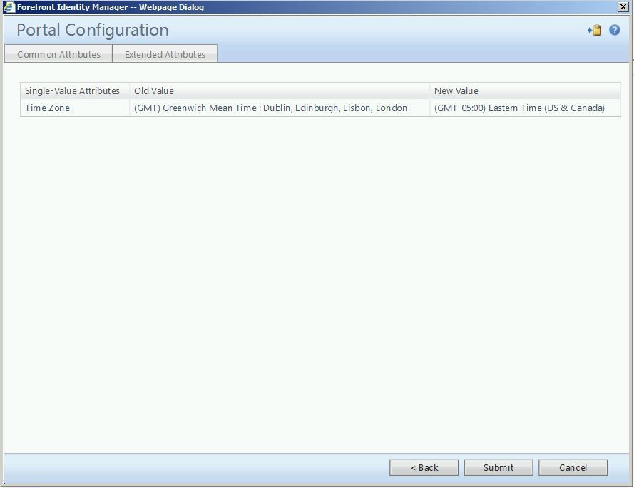Here we see the pending change (remove incorrect time zone and add correct time zone). When finished, click “Submit”.