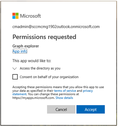 Grant access to Graph explorer to access the directory as you.