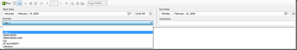 - Separates the Domain and Username fields in the report parameters, so they can be entered separately