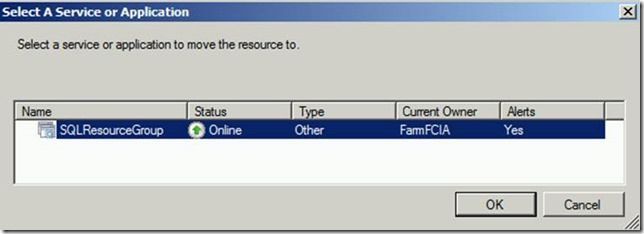 At this point, the resource is available to the cluster but it is not assigned to a cluster resource group. Right click on the disk, select More Actions, and then ‘Move this resource to another service or application.’