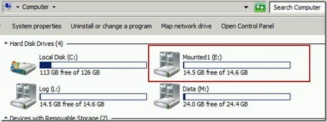 Failover the active node so that it lives on my secondary node, in this case FarmFCIB. Note that at this point the mounted drive will no longer be visible in My Computer.
