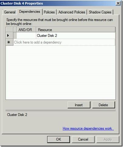 The SQL Server resource also must depend on Cluster Disk 4, which I am not showing here.