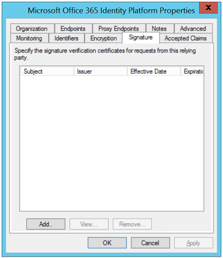 Now, with all that being said, who can explain the signature tab on each relying party application? Rarely does this ever get used but if I’m going to explain certificates, I might as well cover this one too: