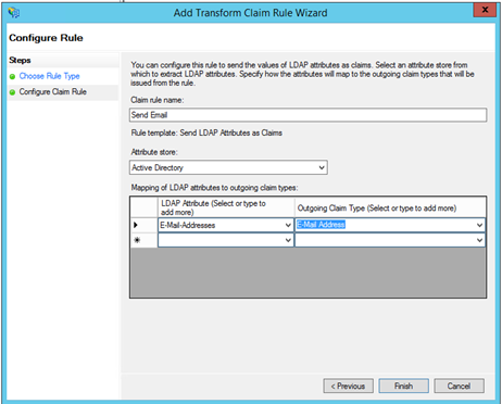 If I do belong to the HRAdmins, ADFS now moves onto processing the claims that will be returned to my browser in a SAML token. The configuration of the relying party trust in ADFS and the application must be configured with the same claims information although if you send them more claims than the application requires, they’ll probably just ignore them.
