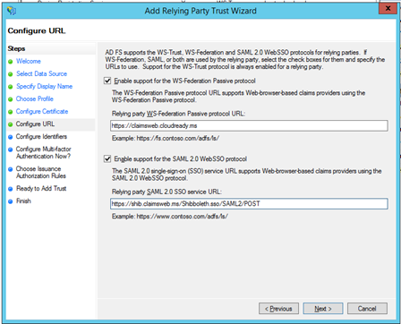 Key Takeaway: Ask the relying party trust owner if they have a metadata that you can import from a file or URL. Also let the relying party trust owner know that you have a metadata that is available at the above URL or can be emailed to them. These metadata files can configure both sides of the trust and make your life much easier.