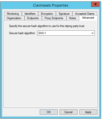 • The supported secure hash algorithm, SHA-1 or SHA-256. Most SAML applications are SHA-1 while most WS-Fed applications are SHA-256.