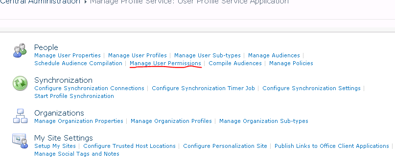 So recently I had a customer ask how the administration permissions worked within the User Profile Service Application, because they had concerns about how much permissions they had to give to a service account for a 3rd party application. So they wanted to understand how those permissions worked and what they would get access to, and here is what I figured out.