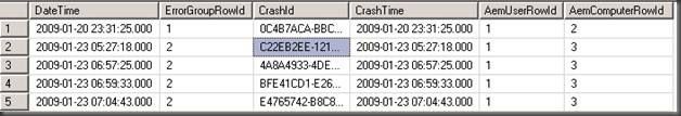 · ErrorGroupRowID can be joined with AEMErrorGroup table to get Application Error details