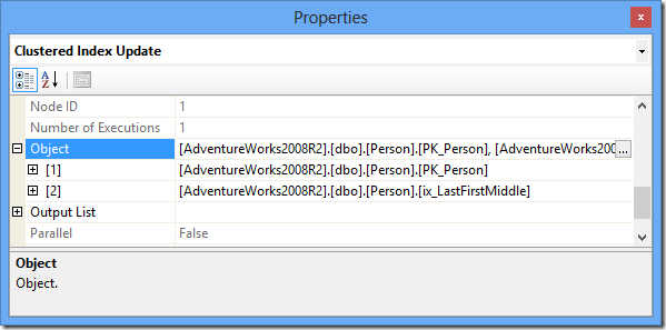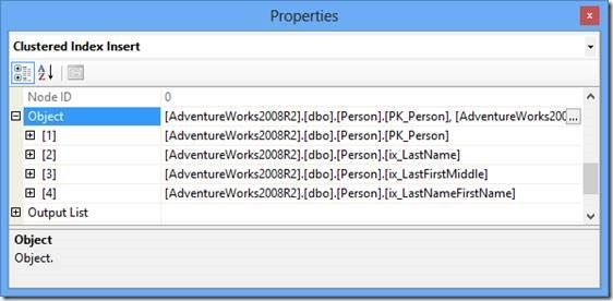If you highlight the Clustered Index Insert operator and hit F4 you can see its properties. Scroll down to the Object node and expand it. Here you can see all that our non-clustered indexes are also being modified by the insert.