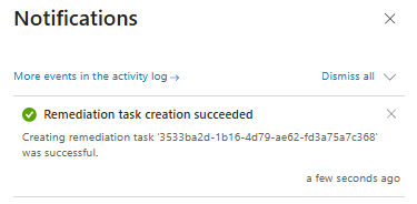 When the Remediate button is pressed, a task is summitted and a notification will be displaced when the task is completed.