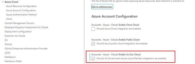 In Azure Data Studio navigate to File > Preferences > Settings. Then, navigate to Extensions > Azure (core). Then, check the box for enabling Us Gov Cloud.