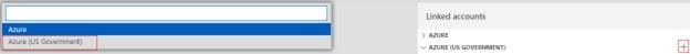 Under Azure (US GOVERNMENT), select the ‘+’ sign, and then select the Azure (US GOVERNMENT) option.