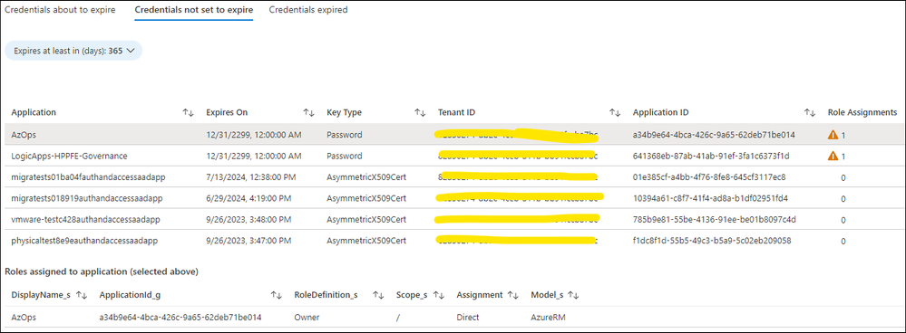 - Do we have service principals with credentials that are not rotated, i.e., expiring very far in the future, and pose a security risk (for example, someone leaves the company and takes those highly privileged credentials with her/him)?