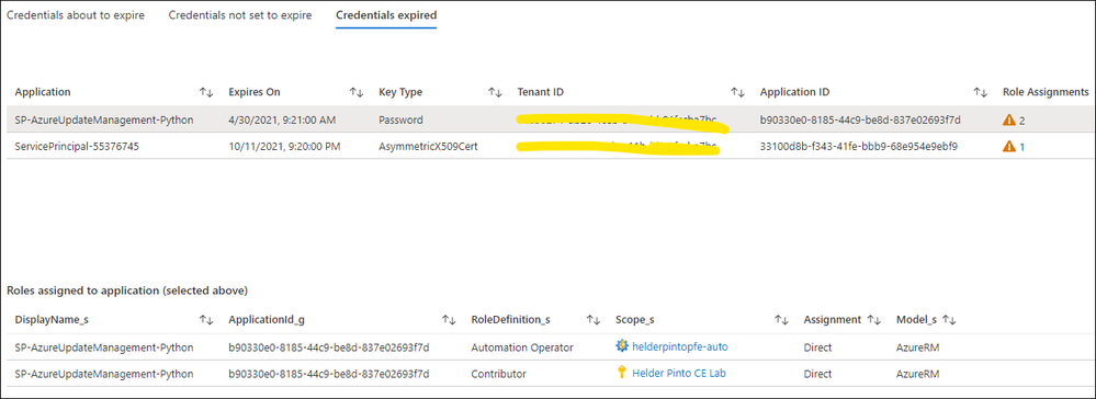 The last sub-tab of the Microsoft Entra ID Credentials section is dedicated to credentials that have already expired and that may be breaking some application or may not be needed anymore and thus can be deleted.